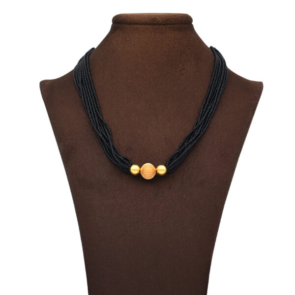 Ornate Black Bead Mangalsutra in 22kt Gold Round Pendant