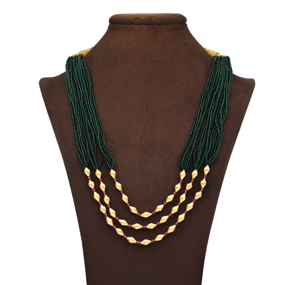 Royal Green Bead Triple Layered 22kt Gold Necklace