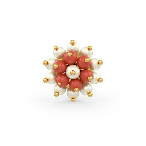 Traditional white Pearl & Coral Cluster Earrings